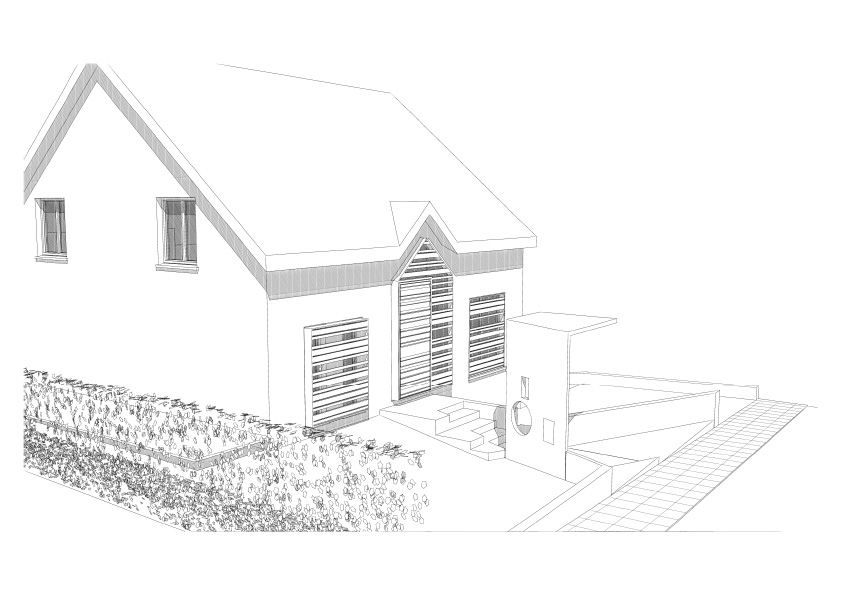 Le projet vise essentiellement à customiser l’espace situé à l’avant de la maison. Les accès menant à l’entrée principale et au garage sont réorganisés, la création d’une place de parking supplémentaire et l’intégration d’un auvent métallique implanté sur l’accès menant vers la maison sont ajoutés. Les ouvertures localisées sur la façade avant seront revêtues à l’aide d’une structure métallique ajourée permettant de minimiser les vues directes depuis la rue et d’atténuer le rayonnement solaire durant la journée. Les façades et les châssis existants seront également mis en peinture.