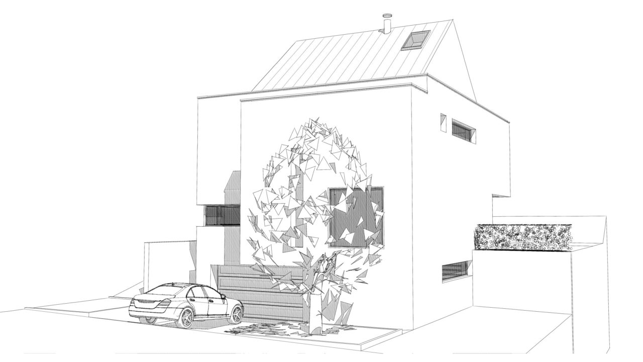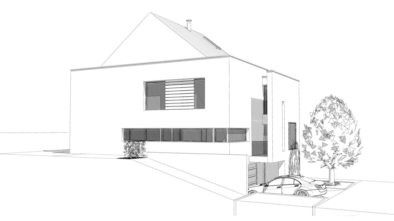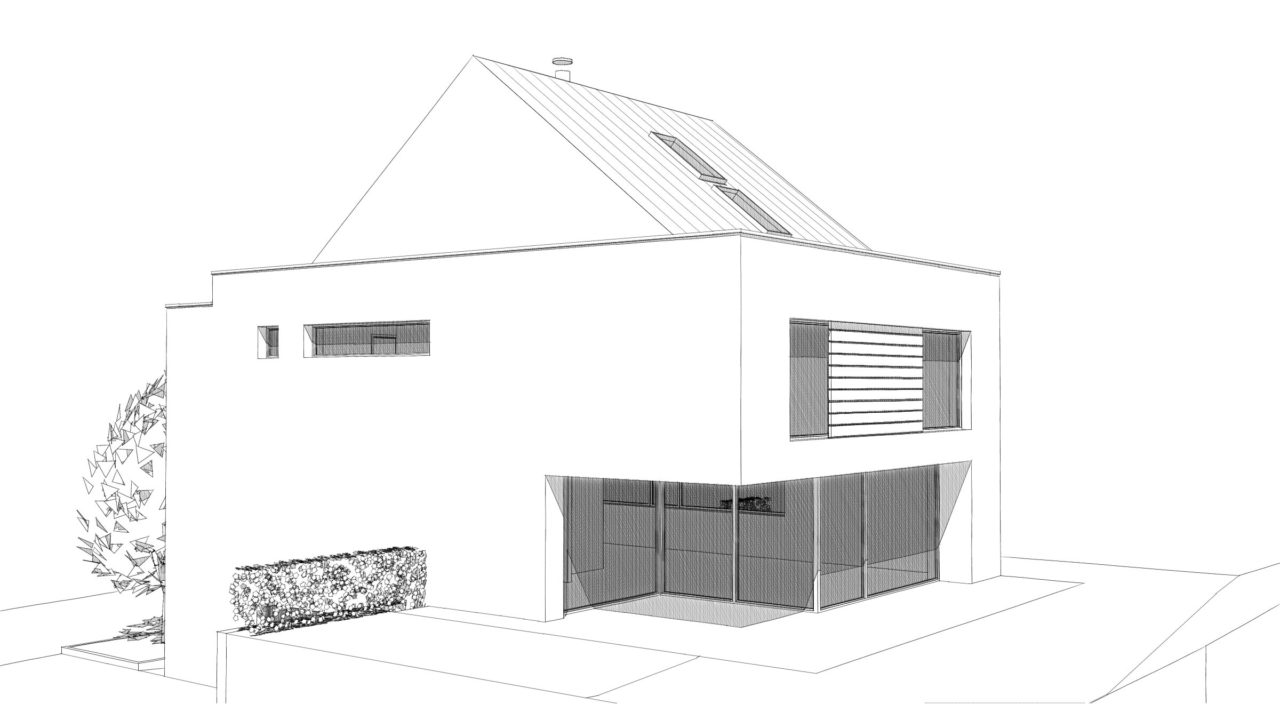 Le corps du volume principal de forme rectangulaire associé à la toiture à deux pans confèrent à la maison un caractère architectural indéniable. Les quatre façades harmonieusement composées en adéquation avec les fonctions intérieures et l’orientation du soleil accentuent le caractère du projet tout en y apportant l’équilibre nécessaire à toute composition réussie.